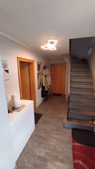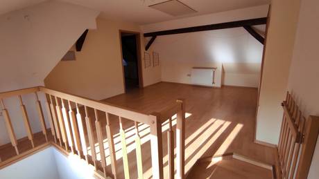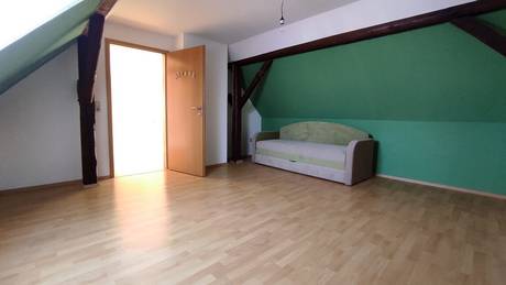 Aufgeteilt ist die Wohnfläche in zwei Wohneinheiten. Insgesamt stehen Ihnen 7 Zimmer zur Verfügung. Über eine Holztreppe gelangen Sie in alle Etagen. Jede Wohnung verfügt über ein Badezimmer. Das Obergeschoss bietet zusätzlich einen ausgebauten Dachstuhl. Im Wohngebäude ergibt sich eine Gesamtwohnfläche von ca. 210 m².